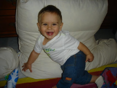 Ana ha aprendido hace un par de días a dar palmitas de una forma ortodoxsa, porque antes se liaba con los brazos y al final se daba en la cara, pero ahora observad que precisión en el palmeo.